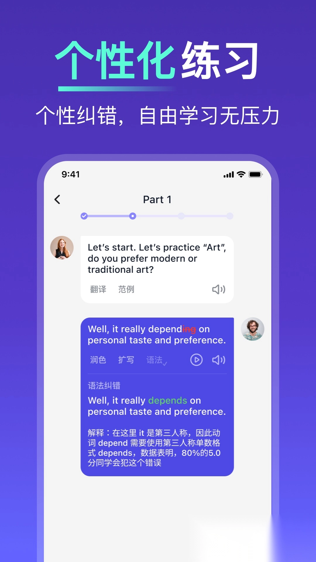 雅思口语练习专家:拥有独家雅思口语题库,及时更新最新考题;采用AI驱动的一对一智能陪练模式;模拟真实雅思考试场景,助力提升应考能力。