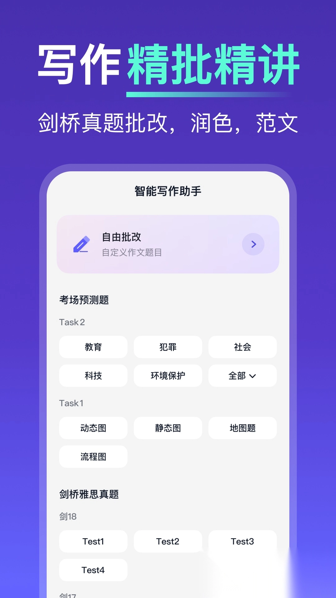 雅思全方位备考指南:包含雅思口语专项训练、雅思写作智能批改、剑桥雅思真题资源;同时提供写作范例与评分标准,助力考生提升成绩。