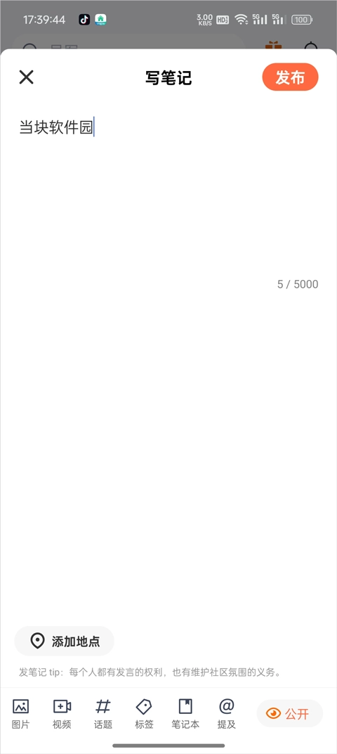 紧接着撰写你需要发表的笔记,然后点击发布即可
