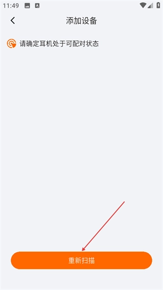 要是长时间都没配对成功,就点击页面底部的重新扫描按钮,去搜索并连接相应的耳机设备。