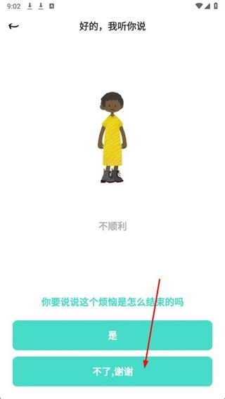 在“嗨,你在烦恼什么呢?”这个页面,点击“真棒,这个烦恼已经解决”按钮。