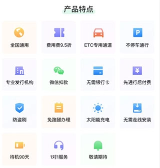 还能了解到ETC的产品特性,像全国通用、不停车通行、太阳能供电、先通行后付费之类的特性。