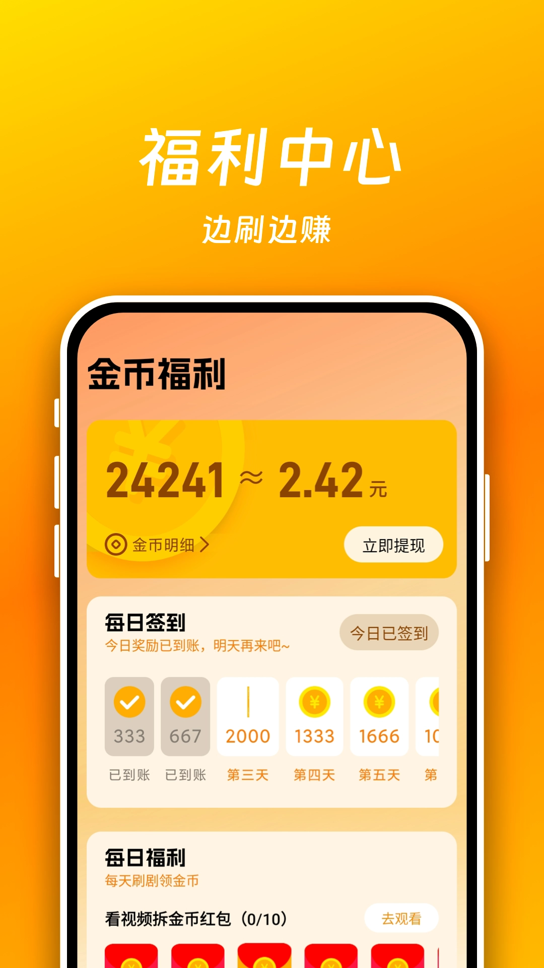 看剧即赚模式:通过观看短剧来赚钱,用户每看完一段剧集就能得到相应奖励,这样既能享受剧情,又能轻松获得收益。