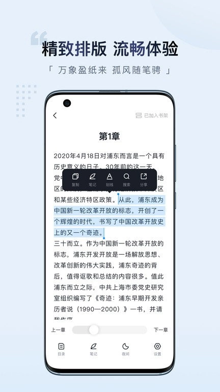 答:阅读时通常会配备对应的标记与笔记功能按钮,您点击这些按钮后,就能对感兴趣的段落进行标注,还可以输入自己的想法和笔记内容。