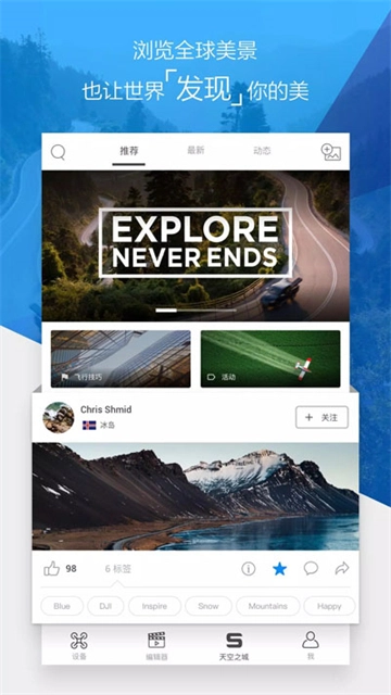 获得飞行达人指点,更快掌握飞行和航拍技巧。