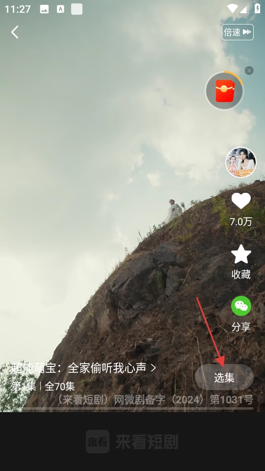 进入短剧播放页面后,点击选集按钮。