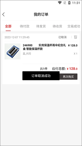这里会显示一个取消原因选项,你可以根据自身需求来挑选。