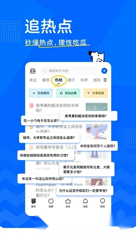 在信息如潮水般涌来的当下,寻觅一处能切实解惑的空间并非易事;知乎便是这样一个聚焦知识交流的移动社区,不管你碰上学习上的难题,还是生活里的困惑,都能在这里得到热心网友与专业人士的真诚相助,与此同时,你还能结识志同道合的伙伴,一起畅谈人生趣事与日常感悟;若想体验这种满含温度的知识分享,不妨就从这里开启。