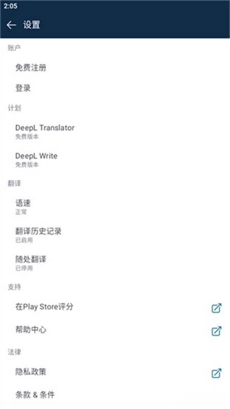 点击设置选项后,能够看到具体的设置内容,在其中可以对各类翻译相关的选项进行调整与设置。