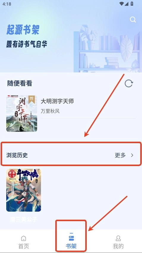 在书架中浏览历史点击更多