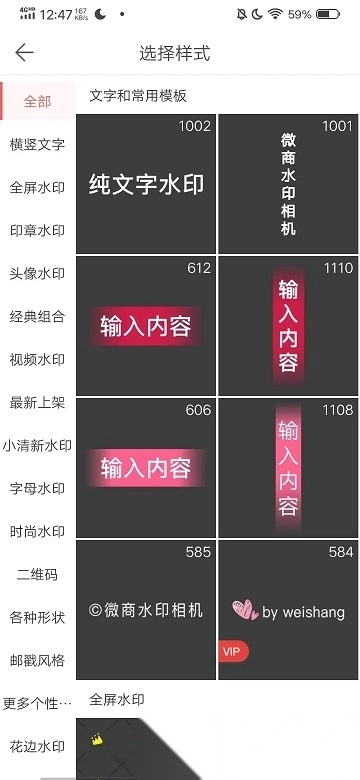 支持添加文字水印,并且能够对字体样式、颜色以及透明度进行调整。