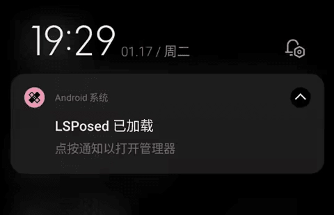 重启设备后,打开通知栏(若通知栏未显示相关内容,可通过拨号键盘输入*#*#5776733#*#*?来进入LSPosed);