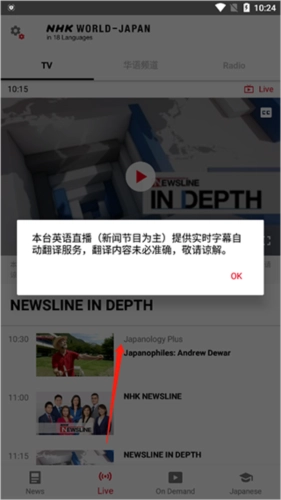 当然,在“live”模板里也包含NHK world华语世界(NHK华语视界)这一功能。
