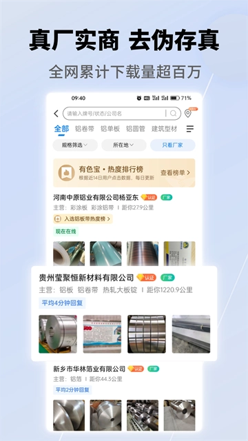 打开有色宝App后,你既可以在首页界面浏览各类产品,也能通过搜索栏查找自己所需的产品。