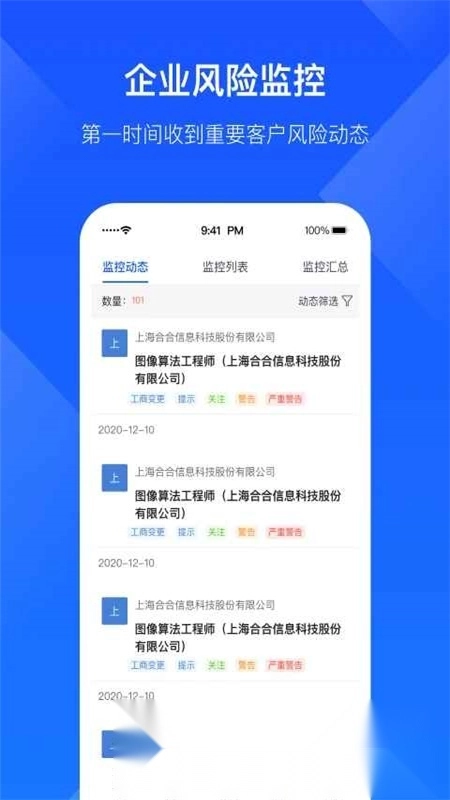 监控变更功能:可实时追踪企业信息的动态变化,并借助邮件或短信渠道推送相关提醒。