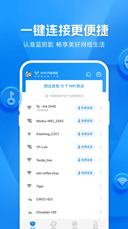 我们拥有强大的云端数据库,里面存储着全国范围内的千万条Wi-Fi热点数据,能助力用户迅速连接到周边的Wi-Fi网络。