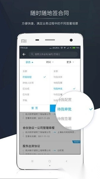 快捷高效:可显著提高传统合同签署的传递效率,减少纸质合同在存储、查询、保管环节的成本与操作难度;用户能够不受时间地点限制完成合同的签署与管理工作。