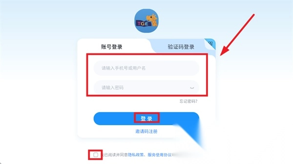 进入登录界面后,在账号登录板块输入已注册的手机号或用户名,接着填写对应的密码,随后勾选同意隐私政策、服务协议与儿童隐私政策,最后点击登录按键即可完成登录操作。