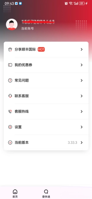 点击“我的”,可以使用分享顺丰国际、我的优惠券、联系客服、客服热线等服务。