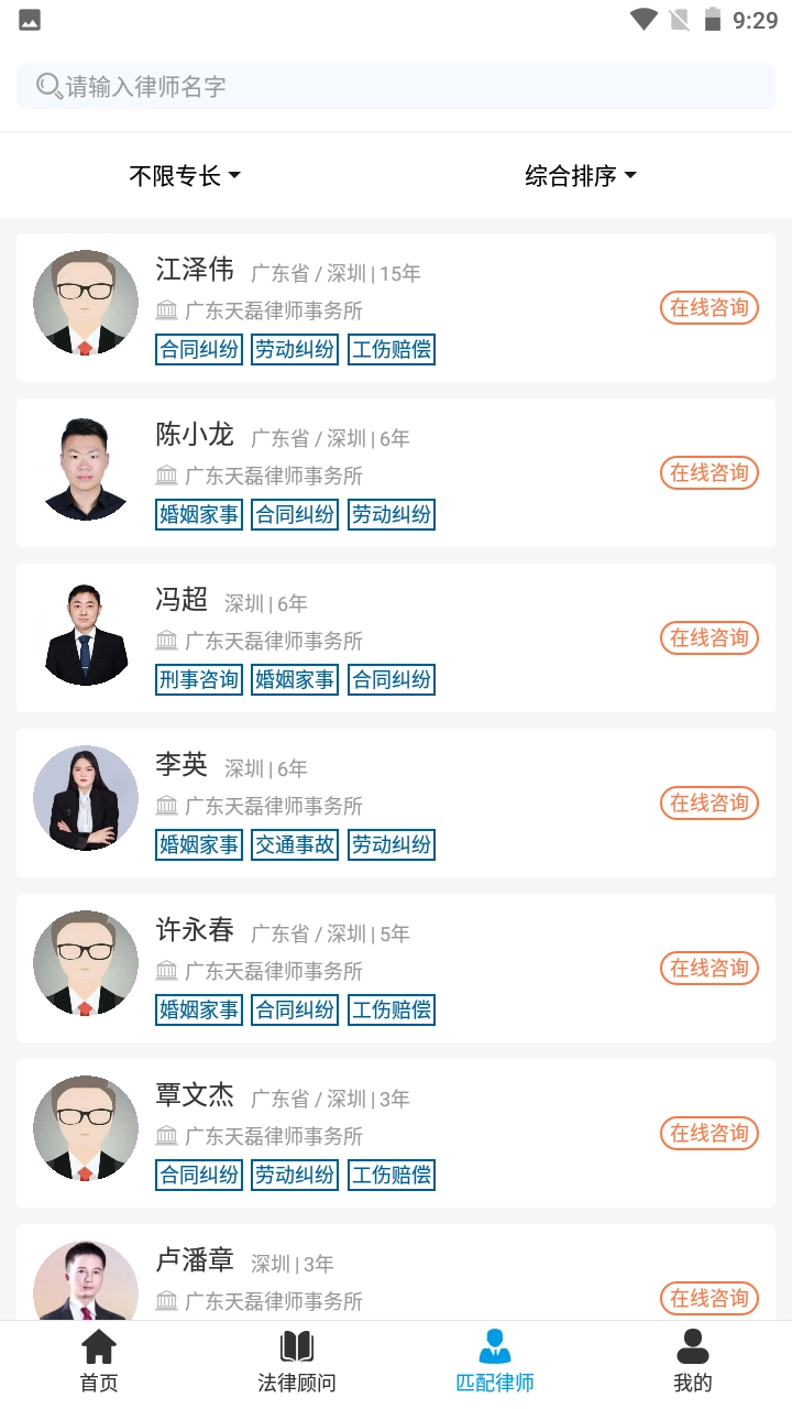 便捷的法律咨询服务:用户能在软件里随时联系律师咨询,处理各类法律问题。