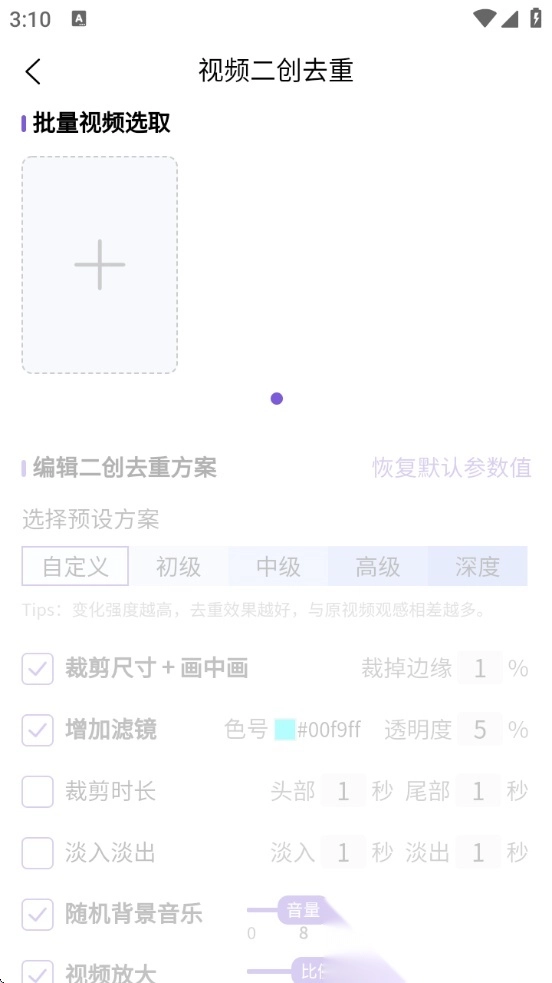 进入功能页面后,可依据自身需求对视频素材开展编辑设置。
