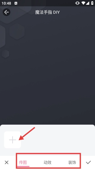 进入魔法手指DIY,切换至【传图】栏目,点击【+】上传图片开展编辑。