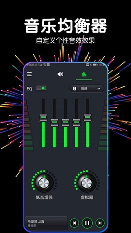 强大的音乐均衡器,具有20多种专业预设声音效果,五频段音乐均衡器,均衡器音量放大器