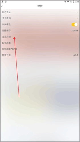 进入设置页面后,点击【意见反馈】选项。
