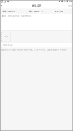进入意见反馈页面后,填写反馈内容和联系方式,接着点击【发送】按钮。