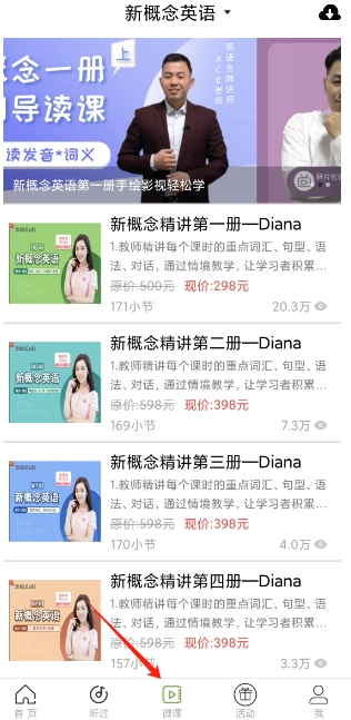 点击下方的微课程板块,就能轻松了解新概念英语的学习课程。