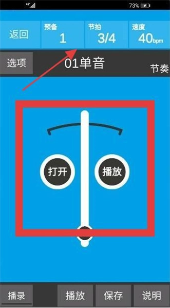 在主界面的顶部,有预备、节拍、速度等控制区域。你可以根据需要点击这些区域来打开并加载相应内容,然后点击播放按钮进行试听。在此过程中,还能通过顶部的控制区域调整预备拍的数量、节拍的类型以及播放的速度。