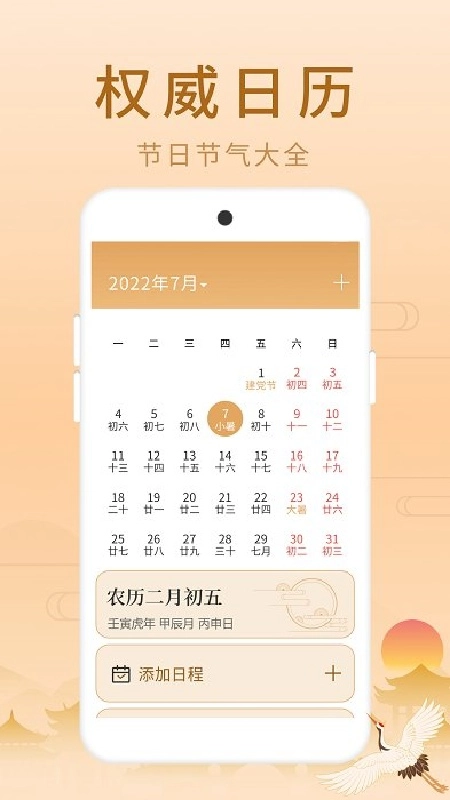 日历功能丰富全面,涵盖节气节日大全,支持一键设置提醒、添加生日,还能一键查询计算。