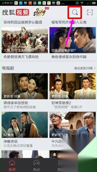 1. 打开应用,点击首页右上角搜索图标(放大镜)。