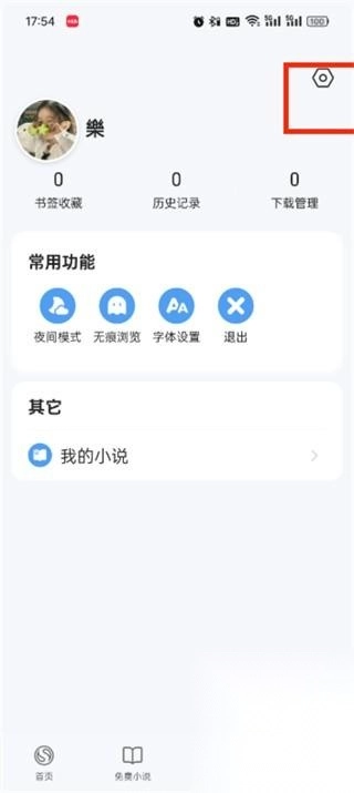 1、启动应用,切换到【我的】页面,点击右上角的设置图标进入设置界面。