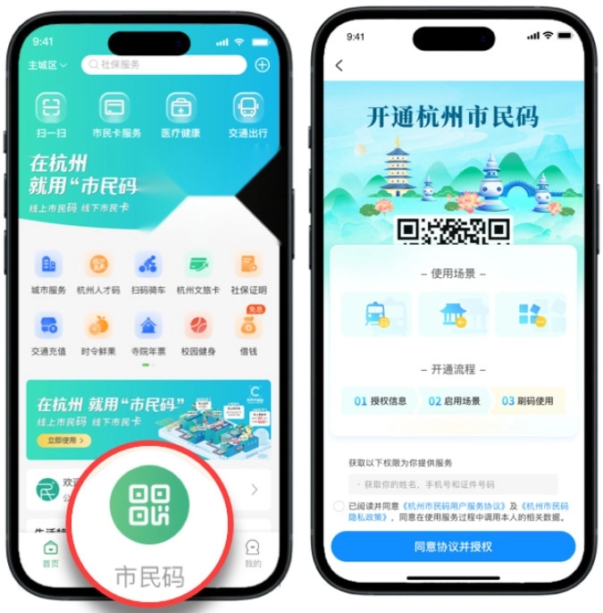 下载APP后首页点击“市民码”同意协议。