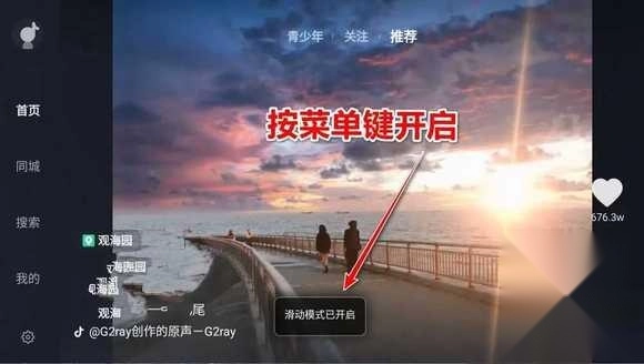 1. 按遥控器菜单键("三"图标)开启滑动模式