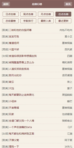 点击【总点击榜】就能看到热门的小说资源;