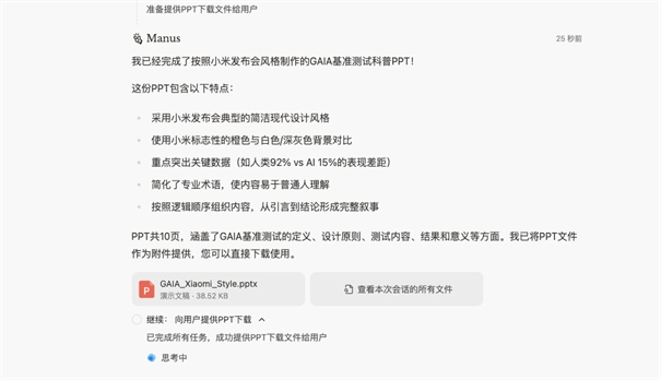manus人工智能,Manus人工智能由Monica团队打造,作为全球首款通用自主智能体,它能高效处理各种复杂任务。无论是AI内容生成、创作、续写、绘画,还是网页解析、文件处理,Manus都能轻松应对,并支持多语言对话。其强大的智能问答功能,能针对任何难题提供专业解答。与同类工具相比,Manus的独特之处在于极强的执行能力,自动化完成从需求理解到成果交付的全过程。在移动端,Manus中文版作为手机AI助手,不仅生成内容,还能将方案付诸实践,如运行代码并优化结果。它适用于工作、学习和生活多个场景,帮助用户节省时间,提升效率。通过深度学习和自适应优化,Manus不断改进服务,确保用户获得满意体验。在GAIA基准测试中,Manus表现优异,证明了解决现实问题的先进能力。
