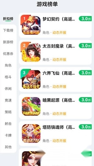 3. 查看榜单专栏,选择热门游戏如棋牌或射击类。