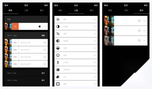 6、参数调整:编辑页含四大功能区。建议先选滤镜再微调,工具区提供20+专业参数。历史页可撤销操作,配方功能保存常用设置。