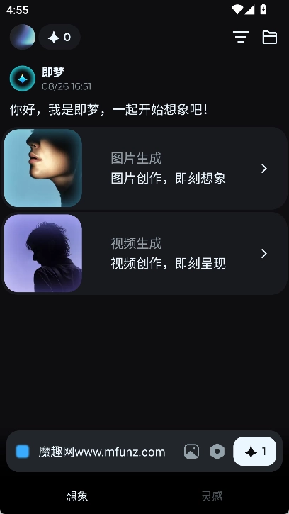 在魔趣网下载安装后,打开软件进入主界面。选择图片或视频生成功能: