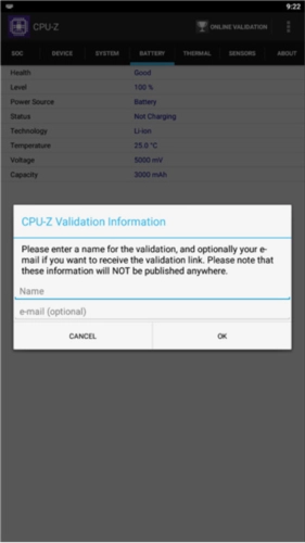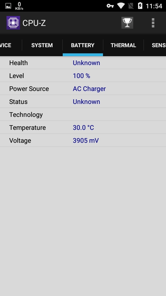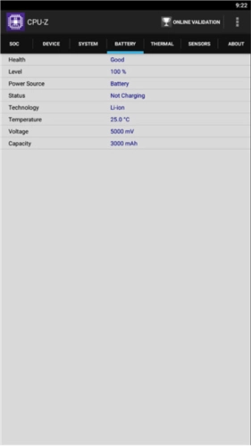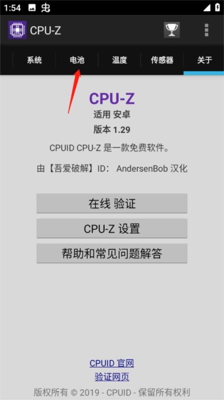 打开CPU-Z手机版,进入电池选项卡