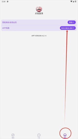 2、点击右下角“我的”,选择“APP线路”网址调整配置。