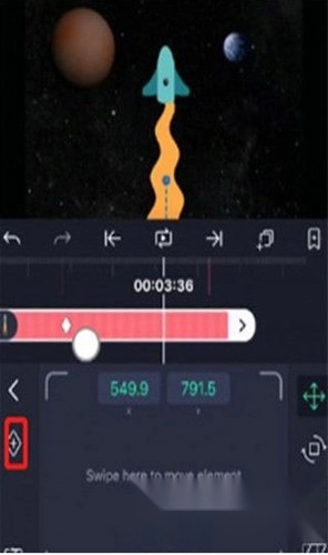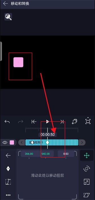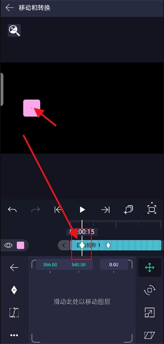 3、移动时间轴,调整图形新位置;