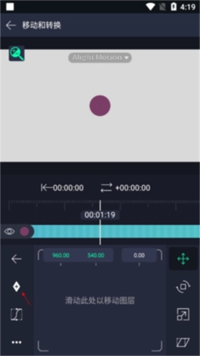2、打开"移动和转换"编辑面板;