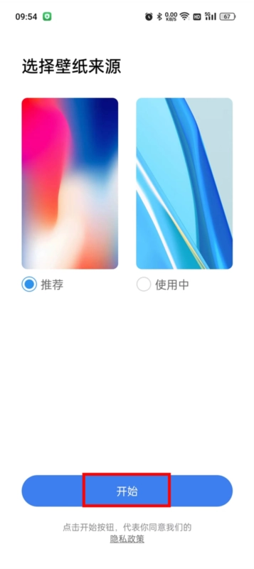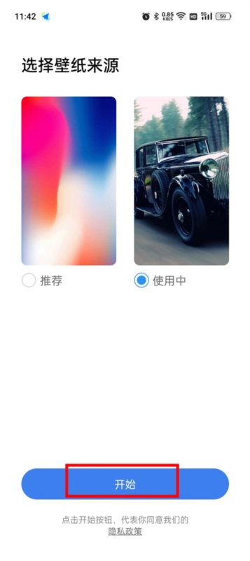 2、选择壁纸来源(推荐使用软件资源),点击"开始"进入主界面。