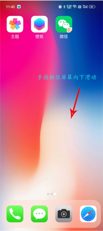 1、启动X桌面完成基础设置后,在桌面下滑调出功能菜单。