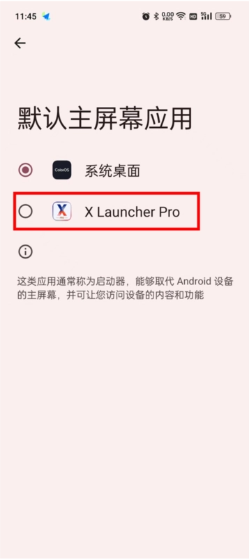4、在系统弹窗中选择"xlauncherpro"。
