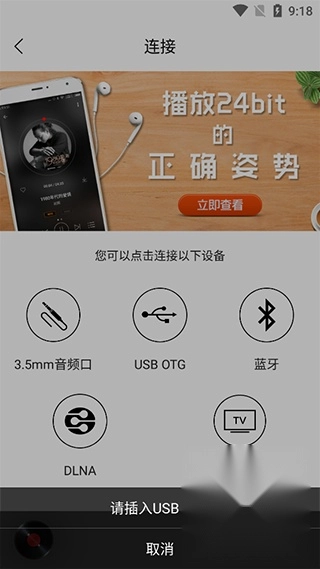 2. 选择音响连接方式(蓝牙/DLNA/USB)