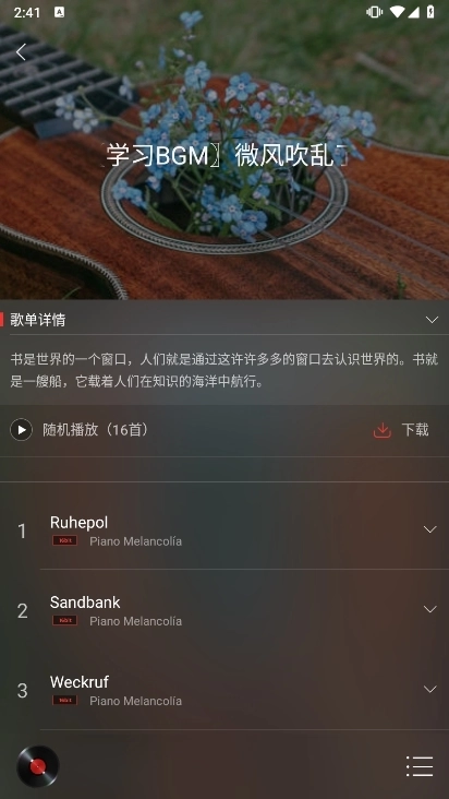 3. 播放器界面显示歌曲列表,随机选取曲目开启听觉盛宴